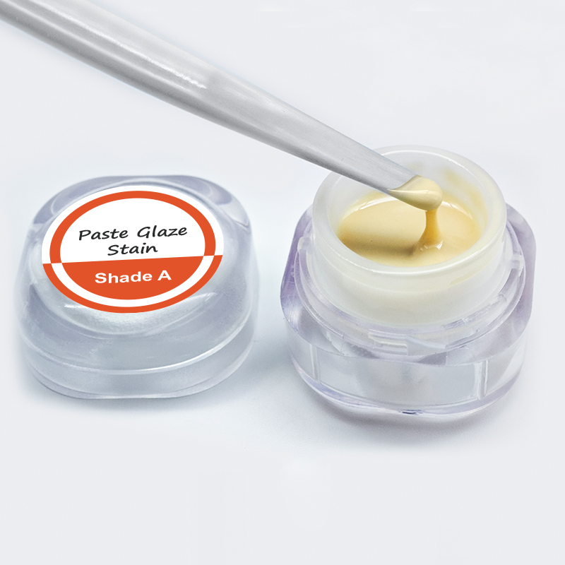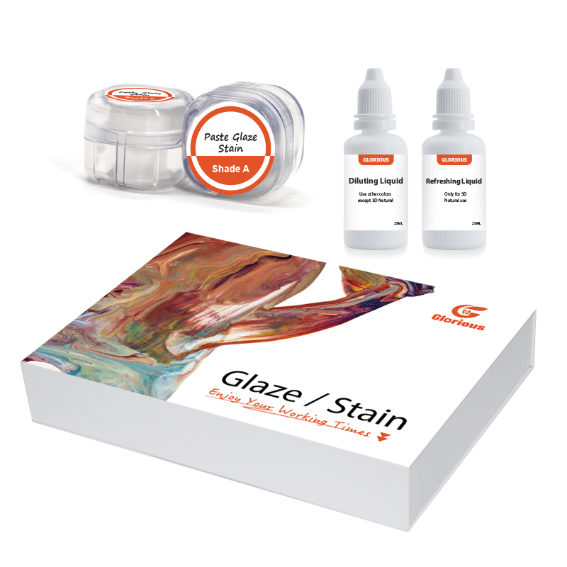 Das Stain & Glaze Paste-Set umfasst vier Haupt-ABCD-Farbtöne, 18 Spezialeffektfarben, Lasur, 3D-Naturton, Verdünnung und erfrischende Flüssigkeit. Jede Flasche Paste enthält Glasurbestandteile. Ein separates Auftragen der Lasur ist nicht erforderlich. Der ideale Effekt kann durch einmaliges Bemalen erzielt werden. Glasurpaste, feine Partikel, Pulver und Flüssigkeit müssen vor der Verwendung nicht gemischt werden. Um eine zufriedenstellende Wirkung auf die Kronenfarbe zu erzielen, können die Farbtöne der einzelnen Pasten beliebig aufeinander abgestimmt und nach dem gleichmäßigen Mischen direkt verwendet werden.