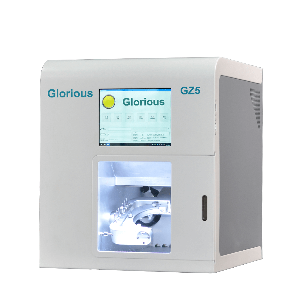 Glorious GZ5 ist eine 5-Achsen-Prothesenschneidemaschine mit 5 Gelenken, die hauptsächlich zum Schneiden von Zirkonoxidmaterialien verwendet wird. Der Aufbau der Geräte ist kompakt und leistungsstark. Es kann verschiedene Arten von Zahnersatz zuschneiden, um den individuellen Bedürfnissen des Kunden gerecht zu werden.